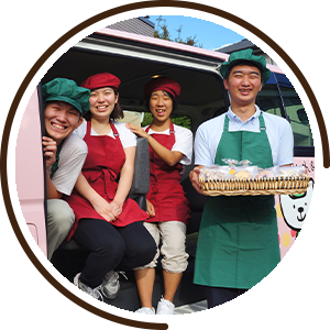 地域の支援学校、区役所、病院や企業等で出張販売を行っています。時にお客様から直接「美味しかったよ!」と嬉しいお言葉も頂くなど、販売の楽しさを学んで頂けます。